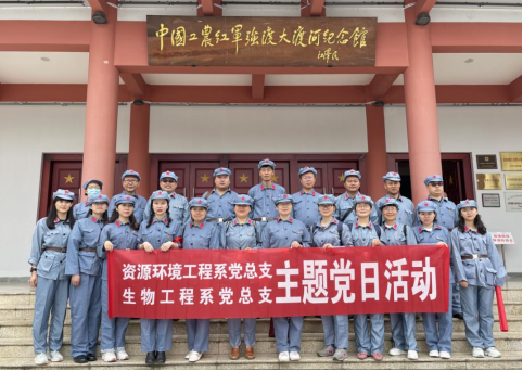 为响应习近平总书记在党史学习教育动员大会上强调“在全党开展党史学习教育”的号召,加强全系党员同志做到学史明理、学史崇德、学史力行、学史增信,以昂扬姿态奋力开启全面建设社会主义现代化国家新征程,以优异成绩迎接建党一百周年。生物工程系、资源环境工程系党总支继去年11月23日赴泸定参观学习飞夺泸定桥后,于2021年6月4日,至雅安石棉县安顺场中国工农红军强渡大渡河纪念馆开展“重走红军路,奋斗新征程”主题党日活动。