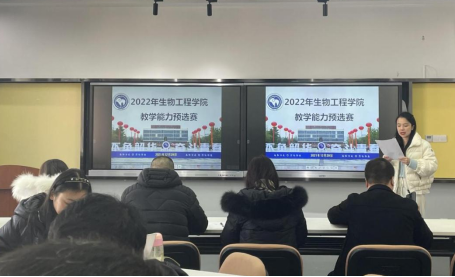 为提升我院青年教师教学能力和水平,促进教师专业发展,2021年12月29日,我院举行了2022年教师教学能力预选赛。大赛由科研处处长杨绍平、教务处副处长双学珍、资环系教师梁洁担任评委,生物工程学院副院长田明武、副书记李军及全体教师观摩比赛,大赛由杨超老师主持。