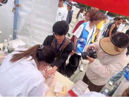 在技能展示中,生物工程学院动物防疫与检疫专业的学生进行了ABO血型检测展示,引来了大批水院学子围观,大家纷纷积极踊跃参加,对此技能展示表示兴趣十足。