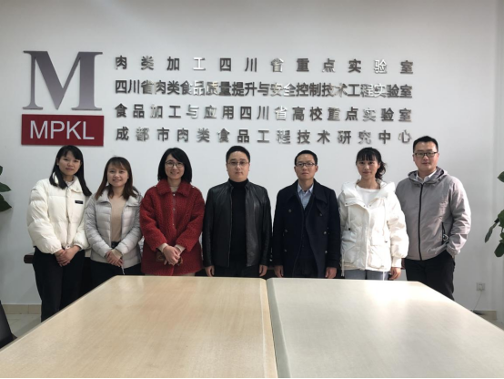 成都大学食品与生物工程学院学工办主任唐远谋等热情接待了我院老师一行,由唐远谋主任详细介绍了成都大学食品与生工学院的发展历史、专业构成以及人才培养模式等,接着在吉莉莉副教授的带领下,我院教师参观了成都大学肉类加工四川省重点实验室以及基础实验室,对成都大学实验室构成、实验建设体系、肉类加工实训设备有了进一步的了解。两院教师就党建工作开展、食品专业建设以及实训室建设管理、科研团队建设、人才引进、校企合作、社会服务等方面进行了交流学习。双方希望未来在科研团队建设、人才引起和食品专业建设等方面进行更深入的交流与合作。