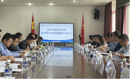 2021年5月7日上午,四川水利职业技术学院畜牧兽医专业建设暨跟岗实习研讨会在学校羊马校区顺利召开,出席会议的有巨星农牧有限公司总经理唐春祥、四川通威饲料有限公司彭金钢、正大集团农牧食品企业西南区四川区副总裁彭晓辉等十三家农牧企业的代表,学校副校长张智涌,学校党政办、教务处、教育科研处、产教融合处的负责人及生物工程系全体教师。