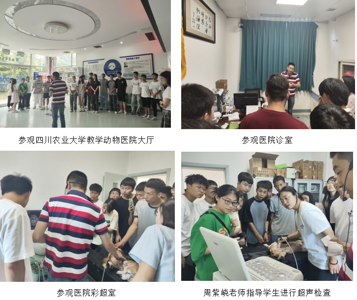 课程结束后,四川农业大学周紫峣老师带领学生参观四川农业大学教学动物医院,包括大厅、诊断观察室、DR室、心电图室、彩超室、处置中心和手术室,对彩超、DR以及呼吸麻醉进行演示操作,并对同学们进行操作指导。