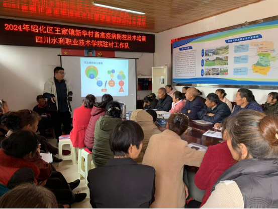 11月21日下午,2024年昭化区王家镇新华村畜禽疫病防控技术培训在新华村村委会举办。生物工程学院畜牧兽医专任教师姜尧章应邀为农户培训畜禽疫病防控技术。