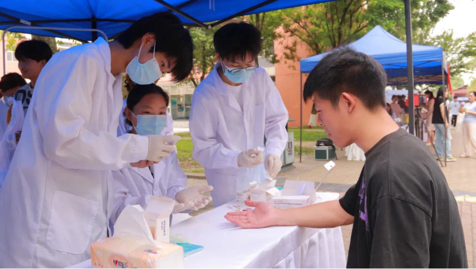 活动现场设置了血型检测体验区,师生们通过指尖采血和血清抗体反应实验,在专业教师的指导下快速了解自己的血型,并学习ABO血型系统的遗传原理和临床意义。专业教师还结合生动案例,深入浅出地讲解了血型匹配在输血安全中的重要性,让参与者建立起基础的医学认知。